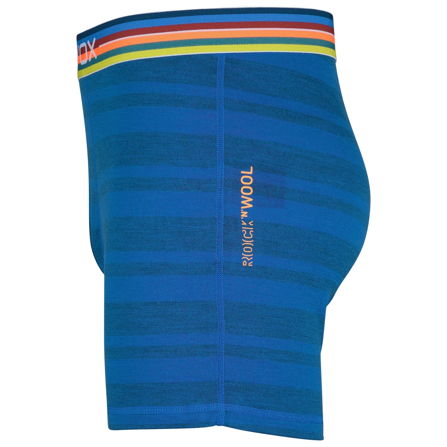 Il a du style : le 185 Rock’N’Wool Boxer de la marque Ortovox nous vient dans un design avec une taille rayée et colorée !